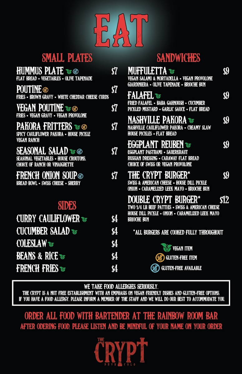Welcome to The Crypt, a unique dining experience tucked away in Denver's North Cap Hill. This edgy venue, adorned with punk rock and horror memorabilia, serves as the perfect backdrop for a night of late-night vegan delights.